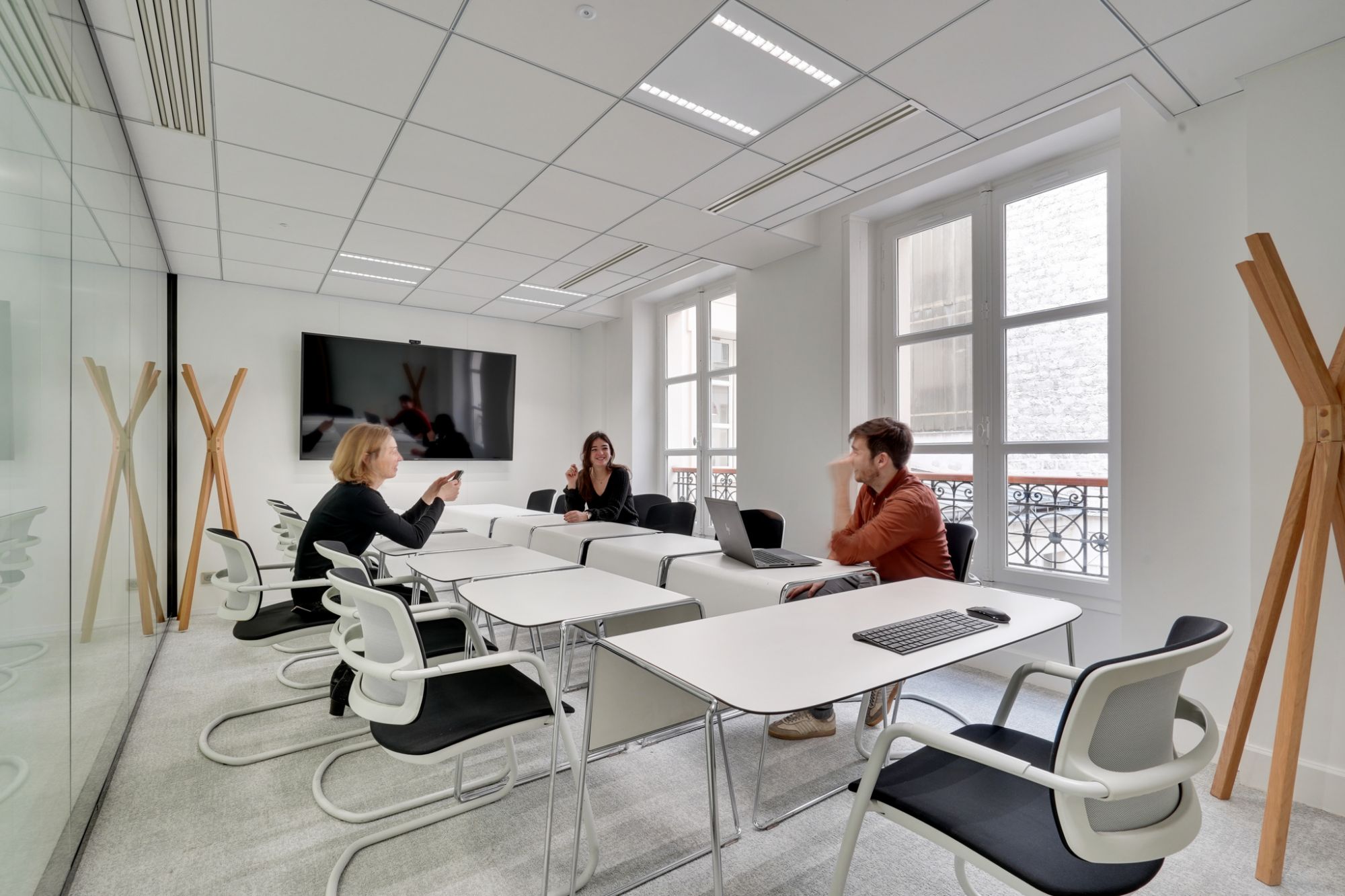 This is why some spaces are modular, in particular the Workcafé, a centerpiece that allows multiple uses, ranging from relaxation to events, including meetings, all of which is optimized by Priva-Lite glazing, glass with controlled occultation.